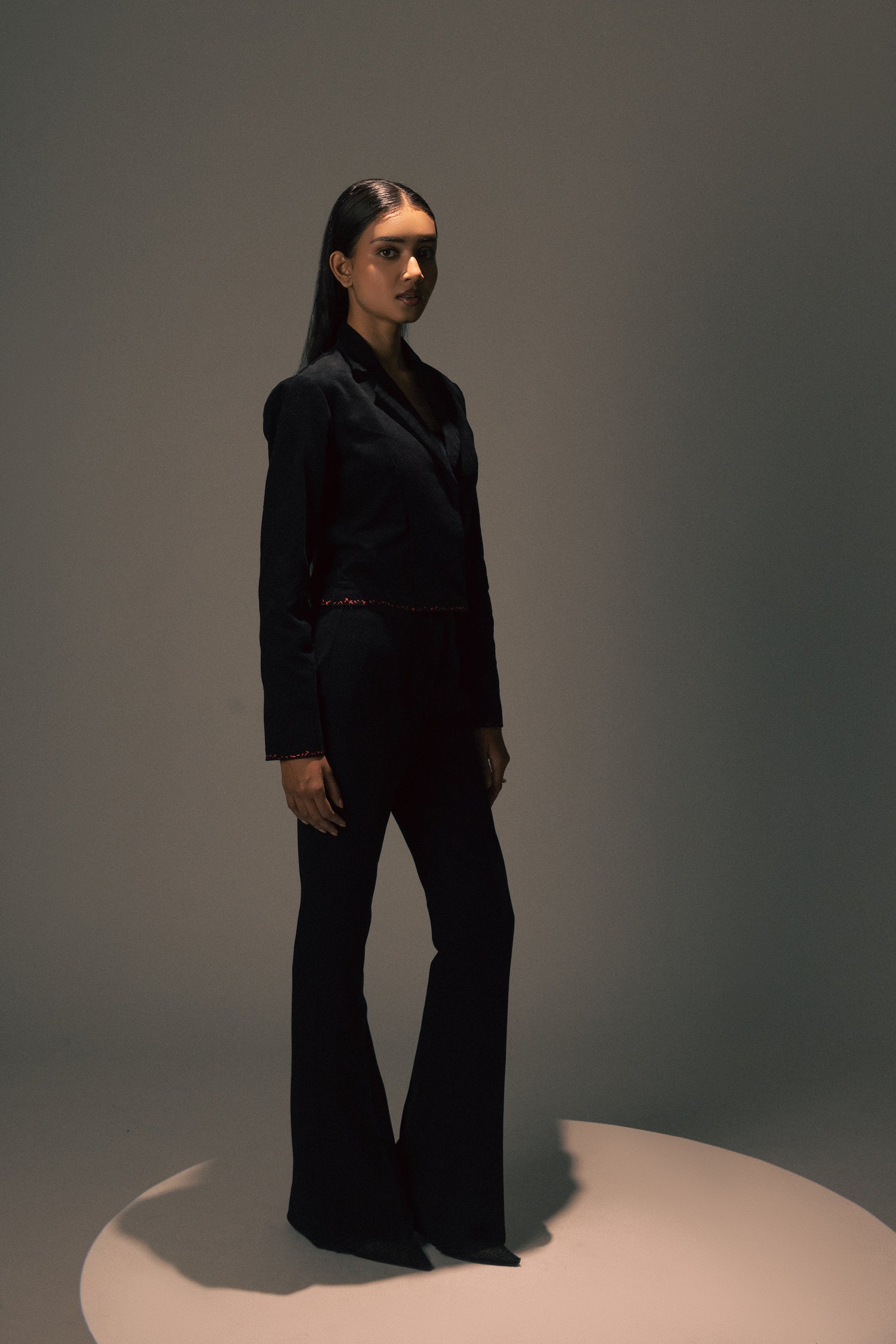 A structured blazer designed with precision tailoring and clean lines. The bound edges create a polished, refined silhouette perfect for professional settings or elevated casual wear. Crafted for versatility, this piece layers effortlessly over dresses, shirts, or knitwear. The structured fit provides a flattering shape while maintaining comfort throughout the day. An essential wardrobe staple that transitions seamlessly from office to evening occasions.